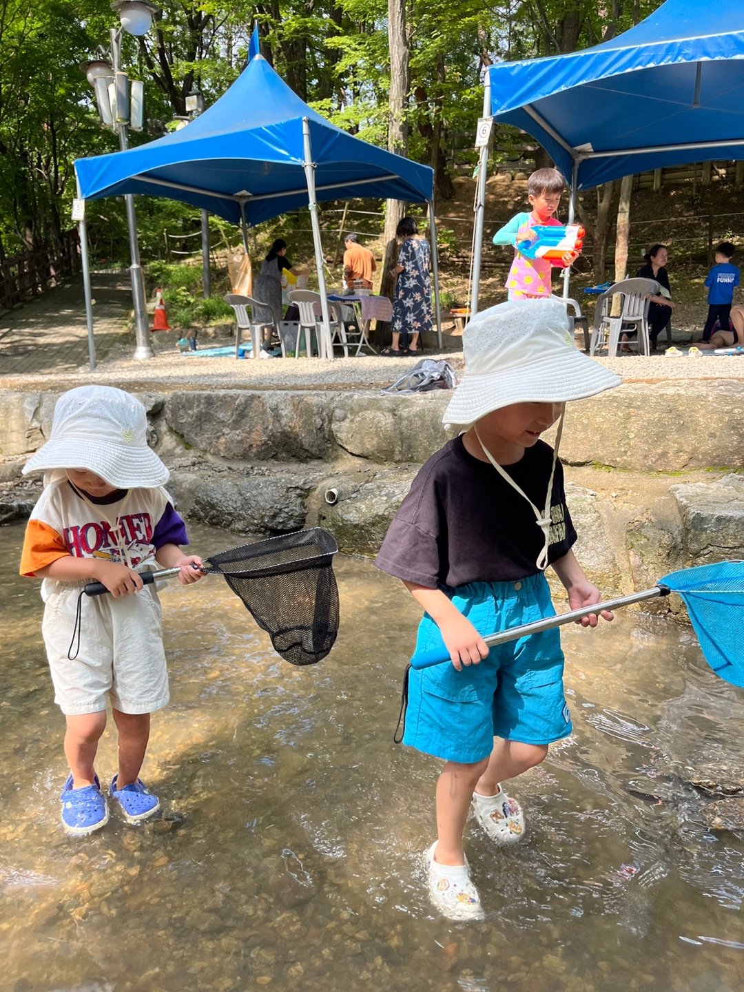 연휴 마지막 날. 과천 캠핑장에 놀러갔다. 역대급 추석 무더위에 우리 가족 넷 다 땀을 엄청 흘렸다. 캠핑장 도착해서 웃통까고 노는 대초형제ㅎㅎ 삼겹살이랑 소고기 구워먹고 계곡에서 놀고 라면먹고 초한이는 응가까지하고 알찬 하루! 내일부턴 다시 등원하자🥰