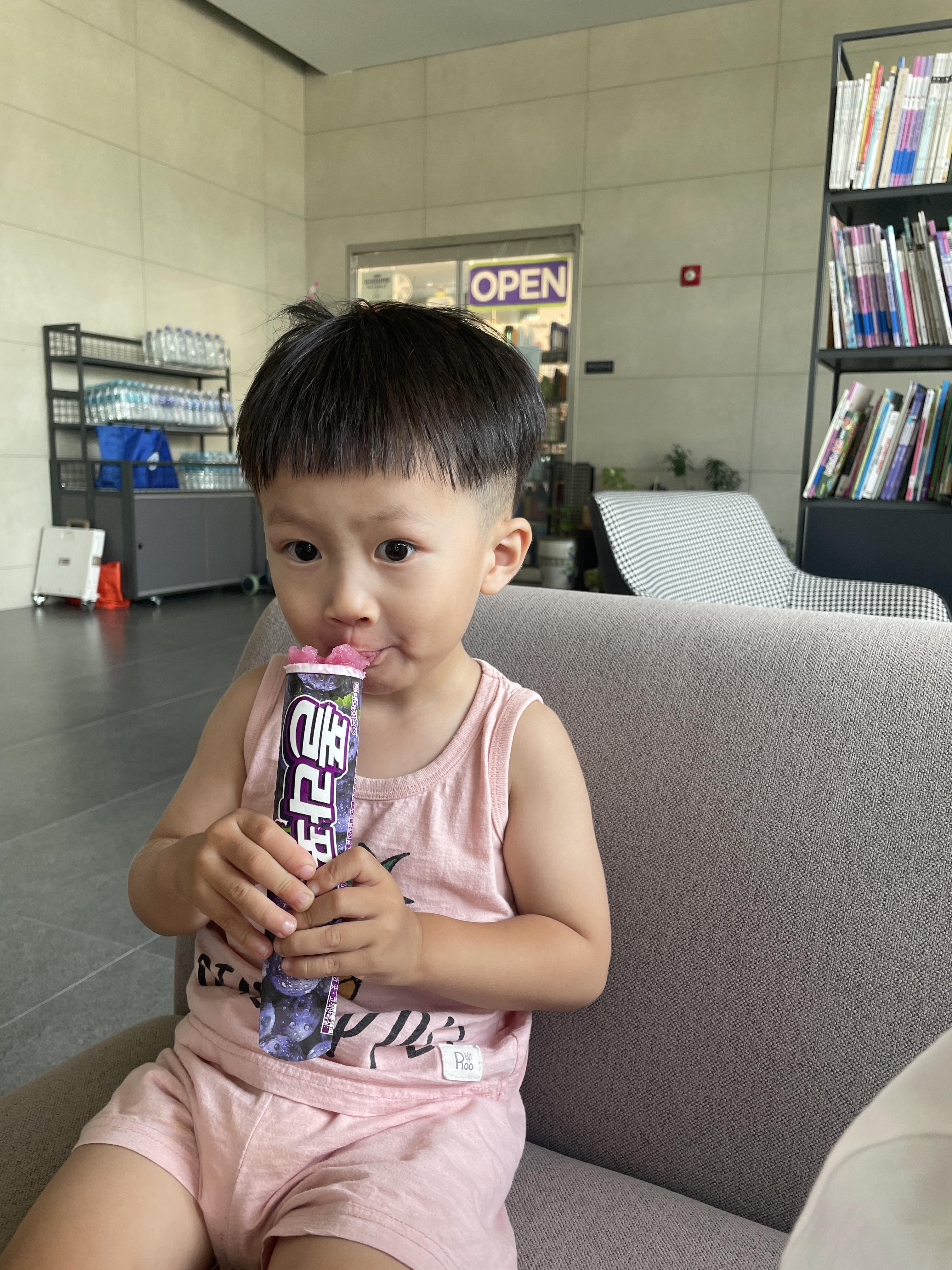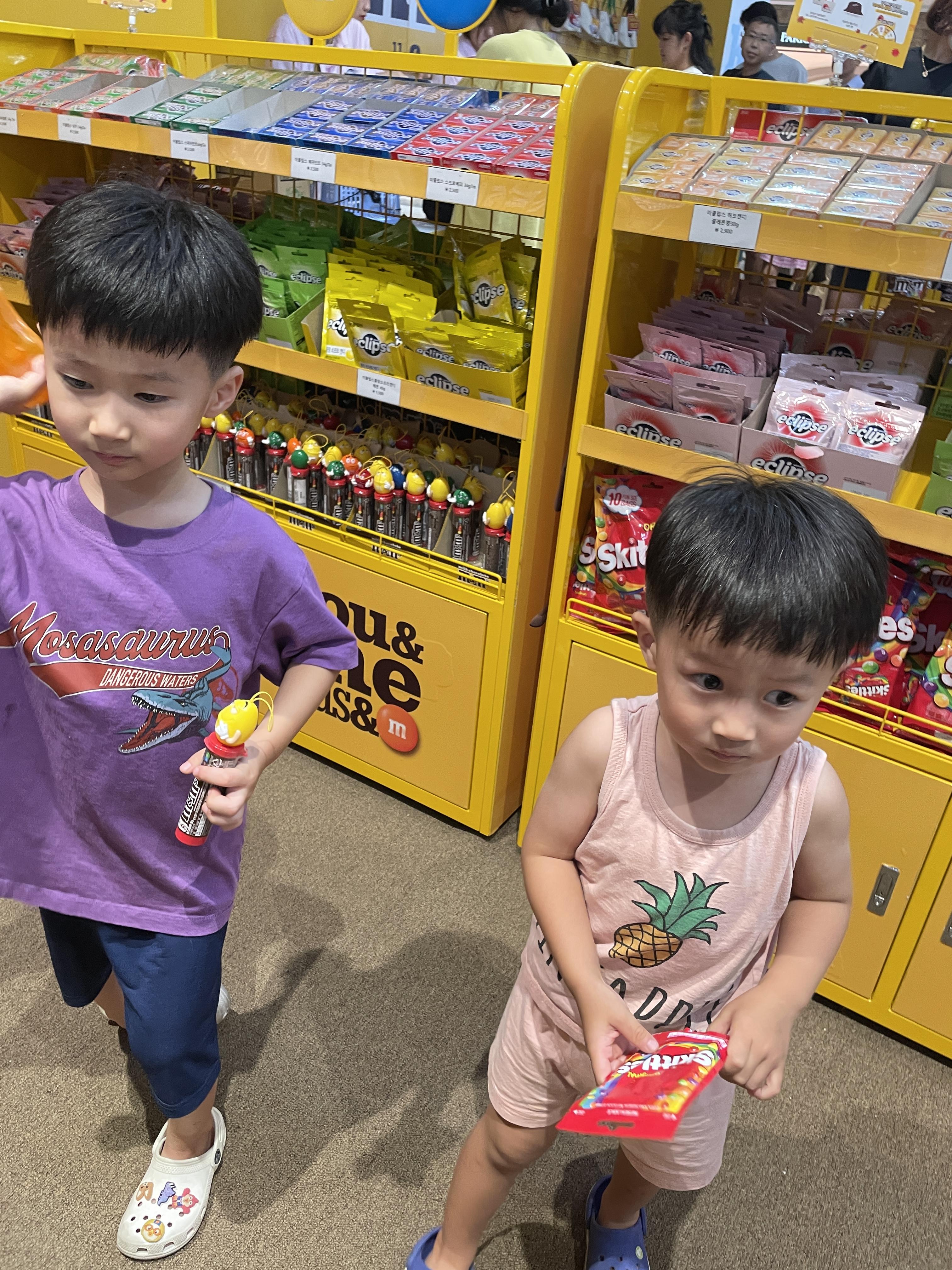 신나게 놀다가 엠앤엠 팝업스토어가서 간식 하나씩 사서 냠냠ㅋㅋ 말 잘 듣는 귀여운 우리 대초🥳