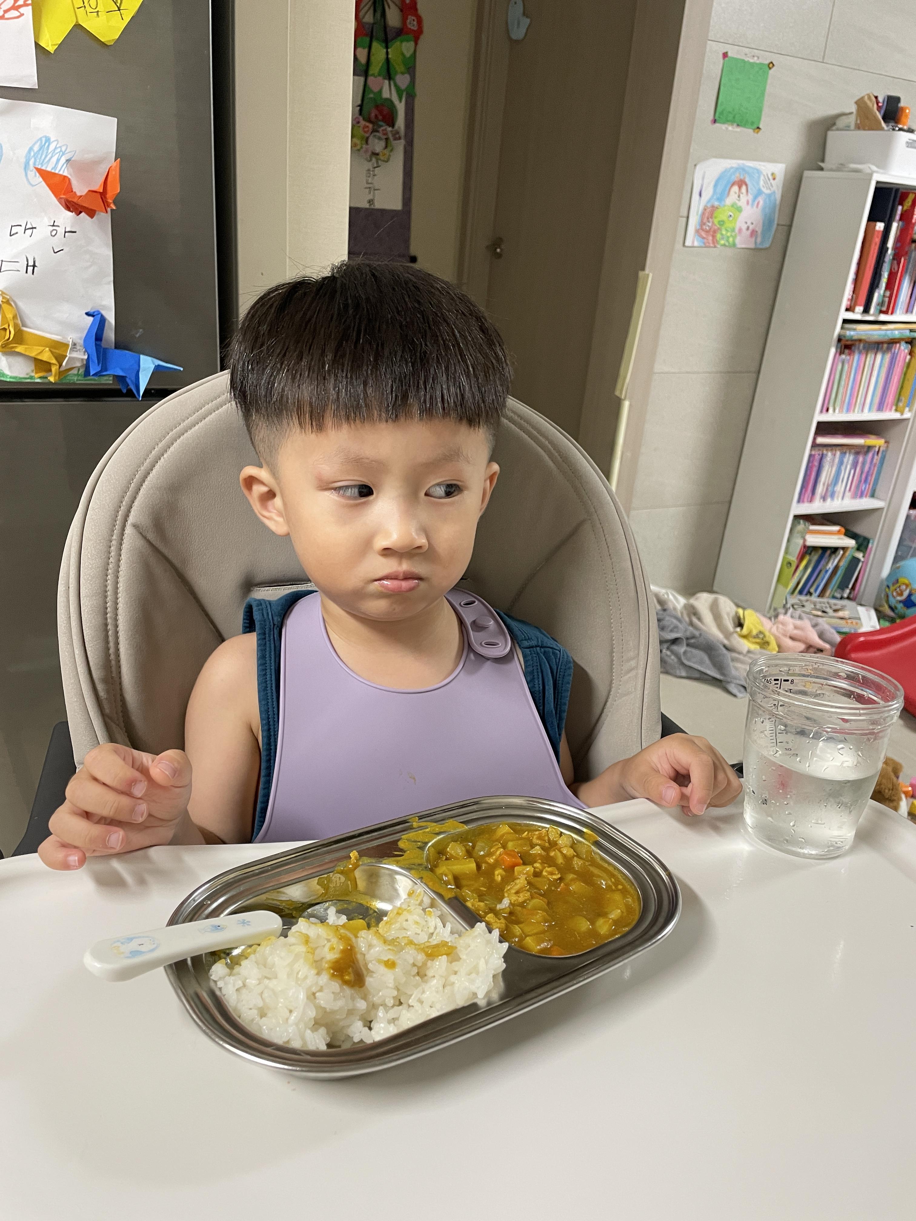 집에 와서 바로 샤워하고, 카레 해먹었다. 송대한 어른 밥공기로 두그릇정도 먹은듯? 근래들어 밥 잘 먹는데 오늘 특히 정말 잘 먹었다. 초한이는 낮잠을 스킵해서인지 피곤해보인다. 그래도 다 먹었다🫡 너무 잘 놀았나..우리 쫄랑이 잘 때 열이 조금 나네.. 푹 자자 사랑해😍